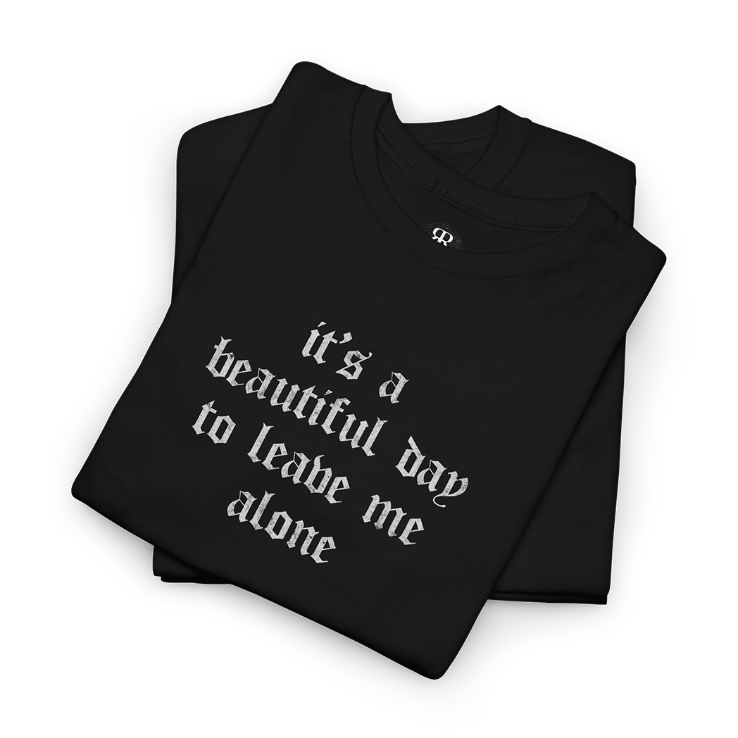 Embrace the beauty of solitude with our exclusive 'It's a Beautiful Day to Leave Me Alone' shirt - a wearable declaration of self-love and the joy found in peaceful moments of introversion.