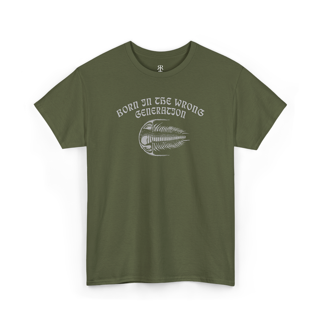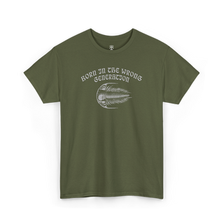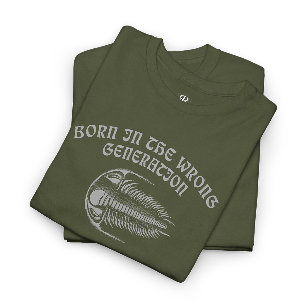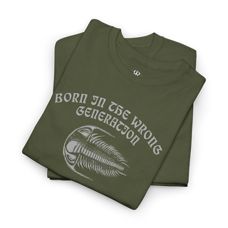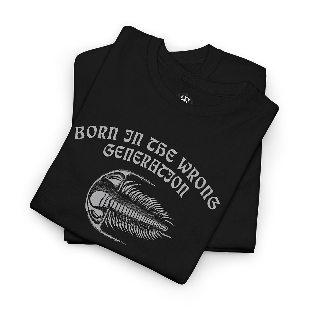 Embark on a journey through the eons where ancient fossils become timeless symbols of an era long past - our 'Born in the Wrong Generation' shirt featuring the humble trilobite invites you to don the armor of an intrepid time traveler.