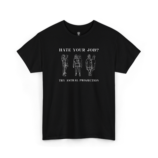Tired of the daily grind? Dive into the extraordinary with our 'Hate Your Job? Try Astral Projection' shirt - an invitation to transcend the mundane and explore realms beyond the 9-to-5.Regular price From €21,50