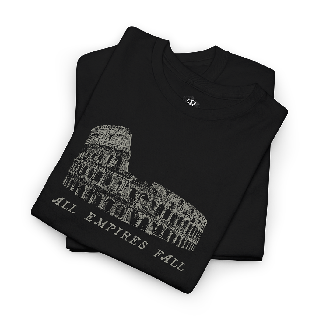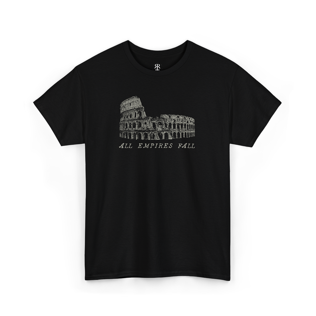 Featuring the iconic ruins of the Colosseum, this shirt carries a timeless reminder: all empires fall. It’s a reflection on history, power, and impermanence - a statement that no empire, system, or structure lasts forever. Bold, thought-provoking, and designed to spark conversation.