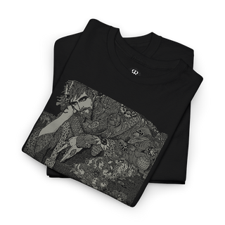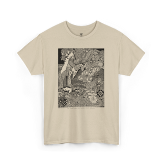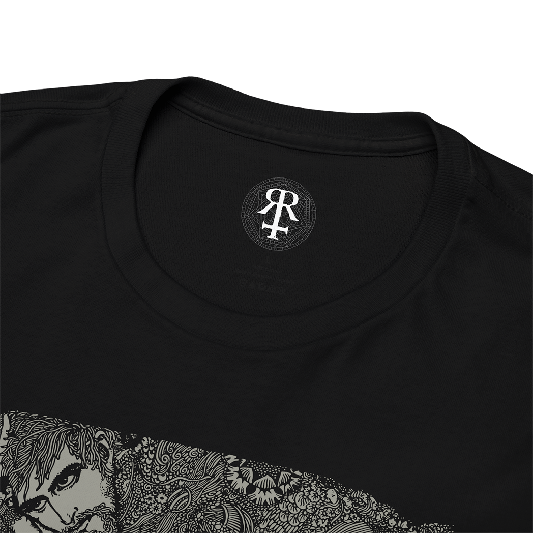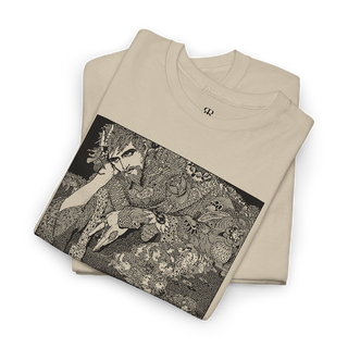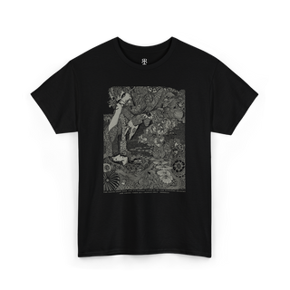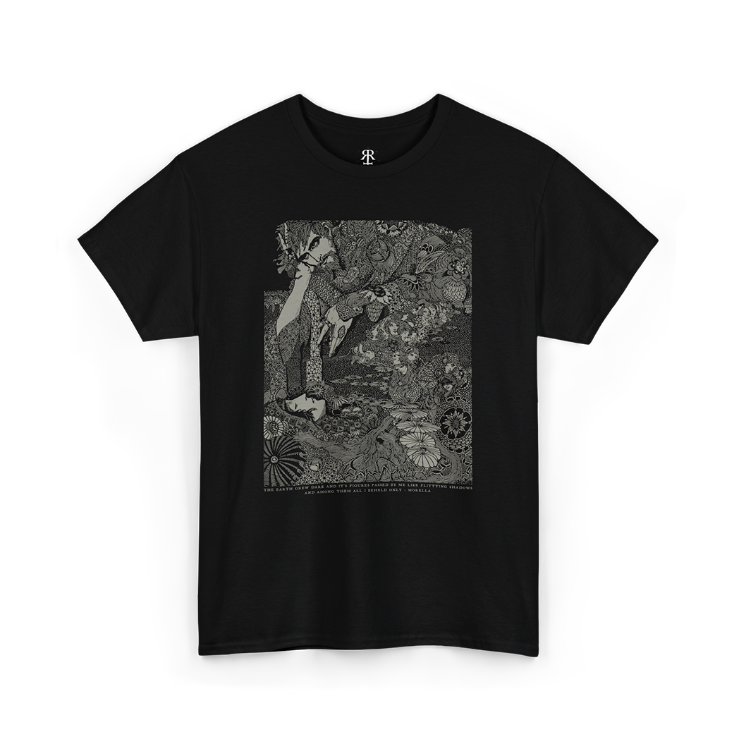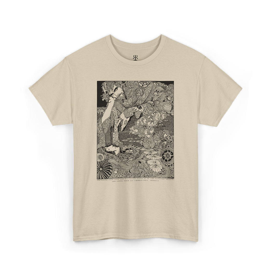 Harry Clarke's Morella T-Shirt featuring illustration from the classic Edgar Allan Poe book "Tales of Mystery and Imagination", made in his signature art nouveau and avantgarde style, with dark academia vibes and aesthetics. Embark on a journey into the mysterious and macabre with our 'Morella' shirt, a captivating illustration inspired by Edgar Allan Poe's haunting tale of mystery and imagination.