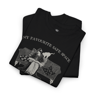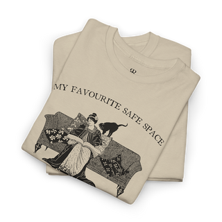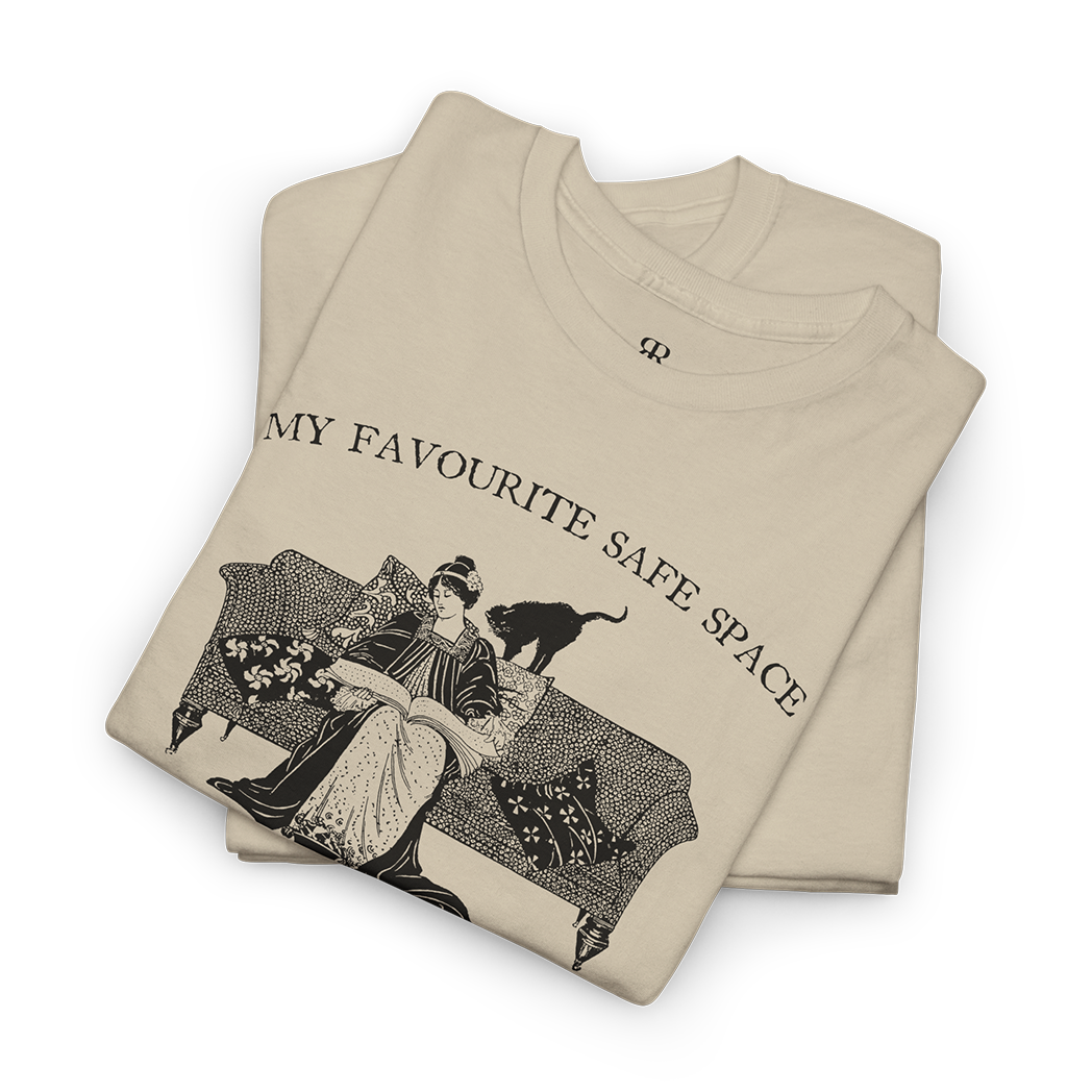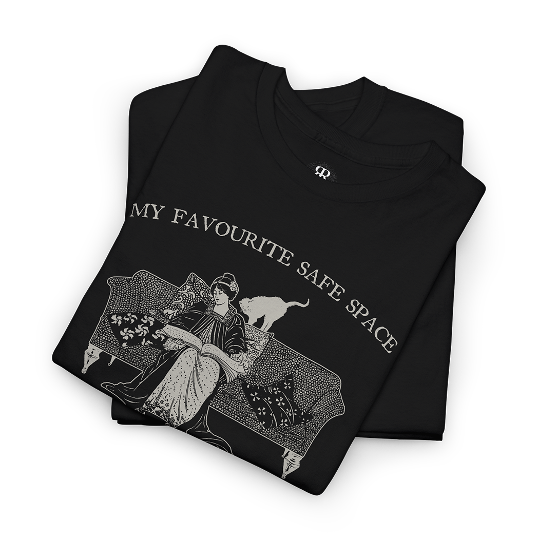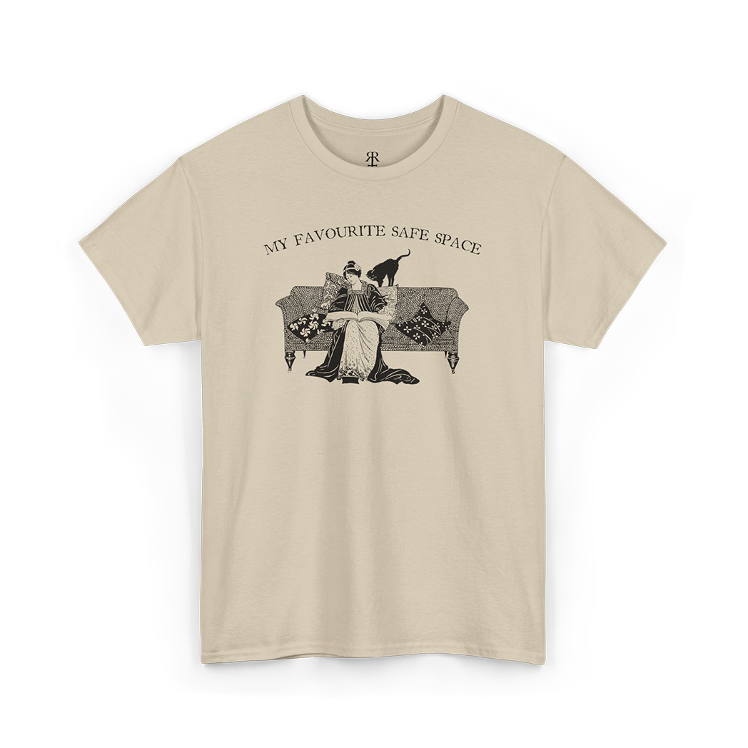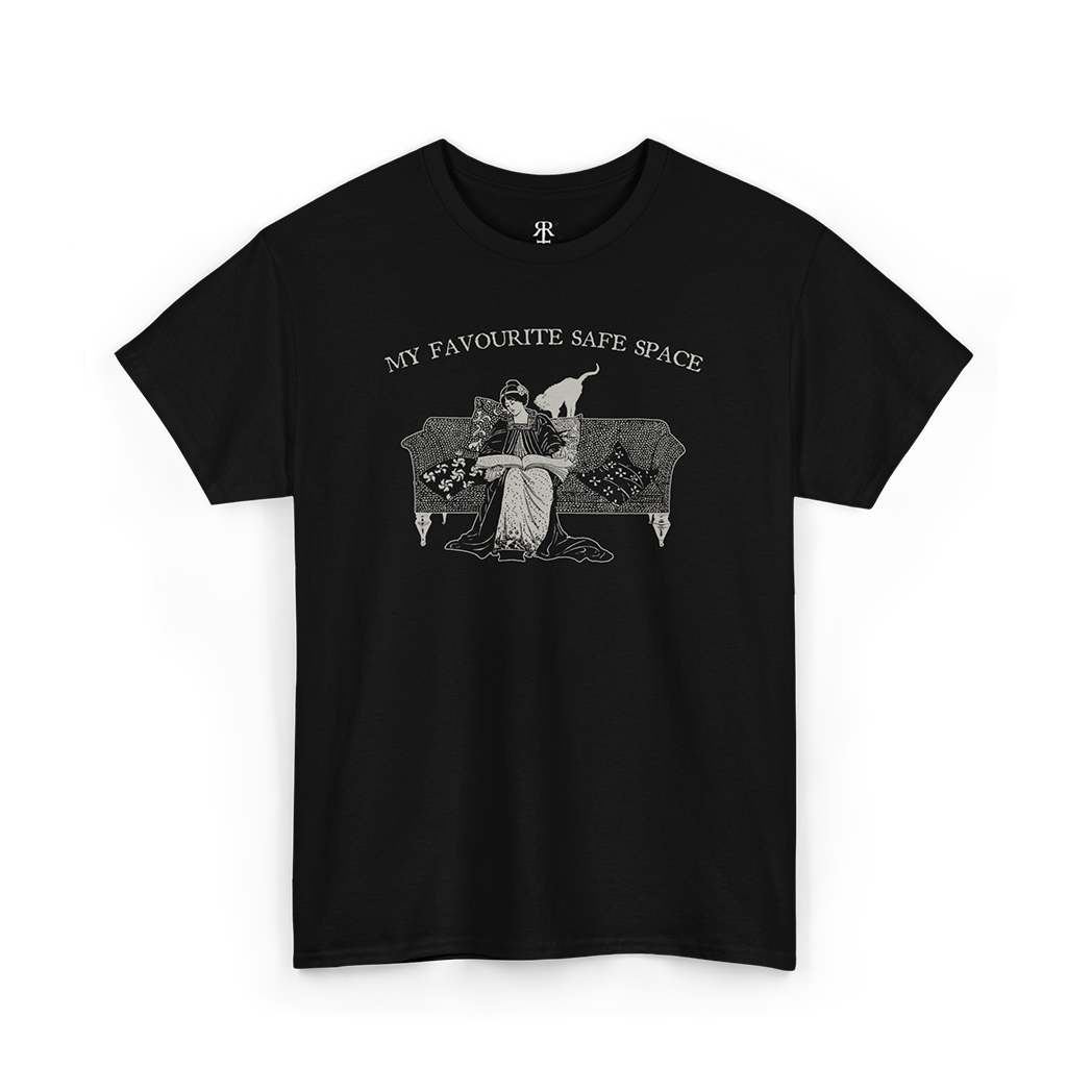 The ultimate comfort zone: a cozy couch, a good book, and a loyal cat. Perfect for those who find their safe space in the simple joys of solitude and feline companionship.