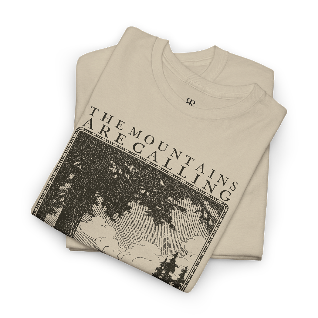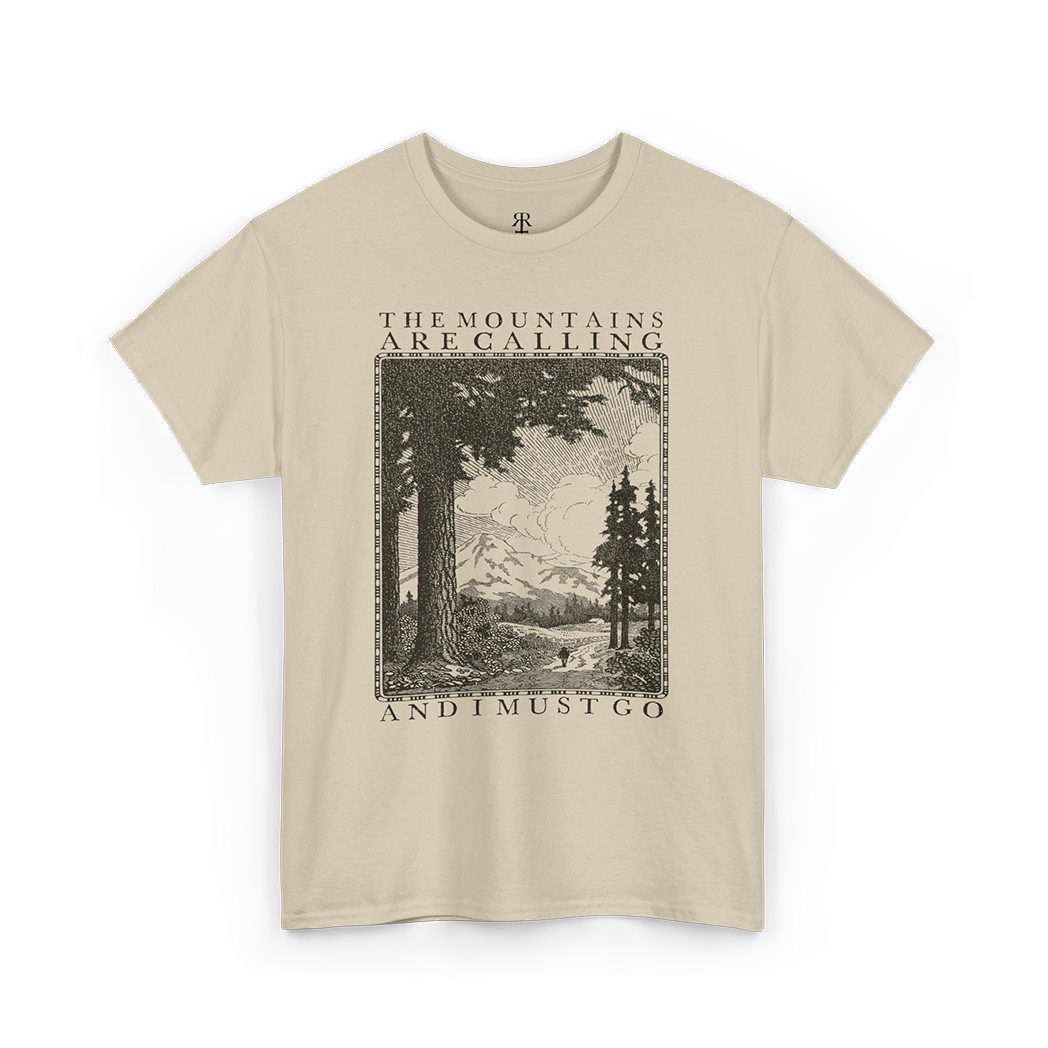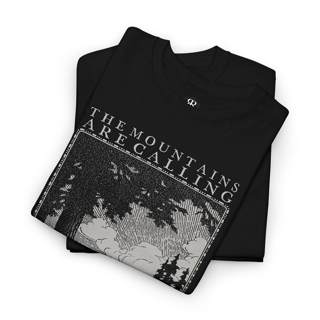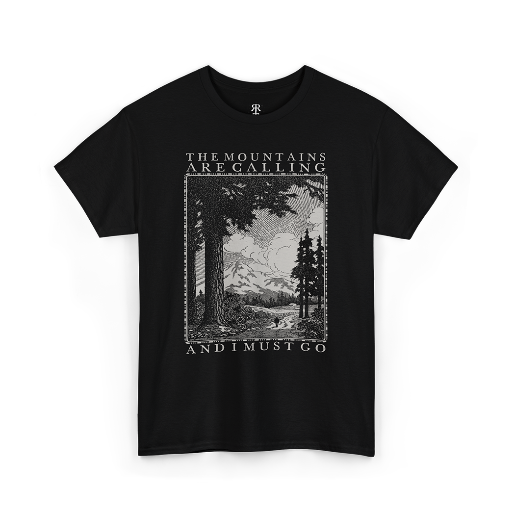 Answer the call of the wild with our "Mountains Are Calling" t-shirt.