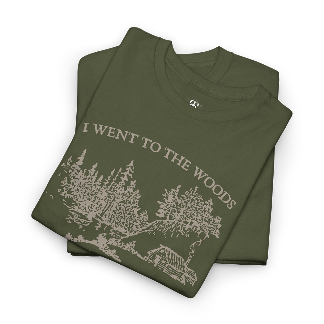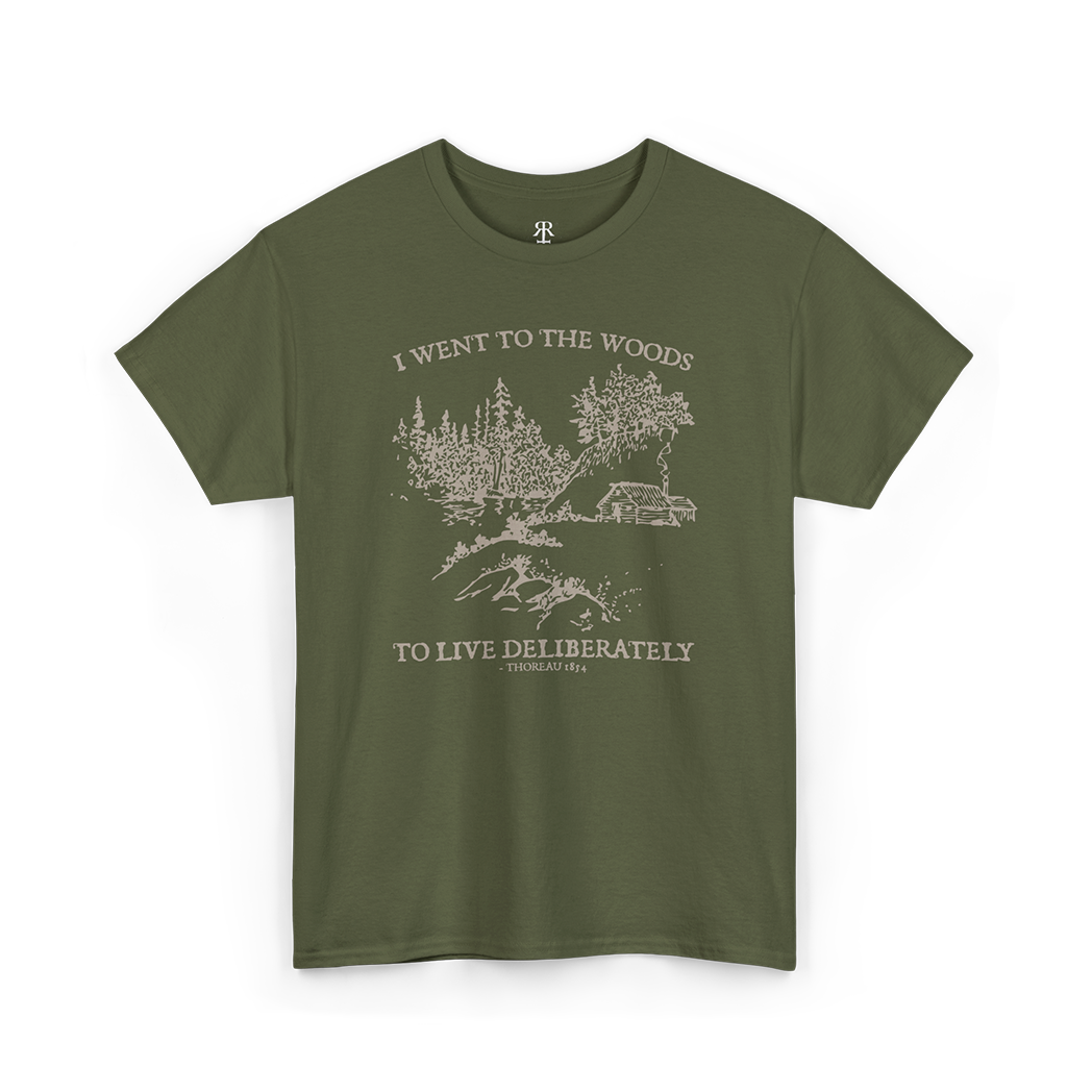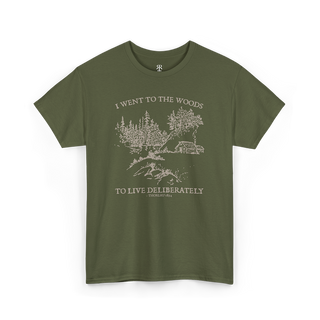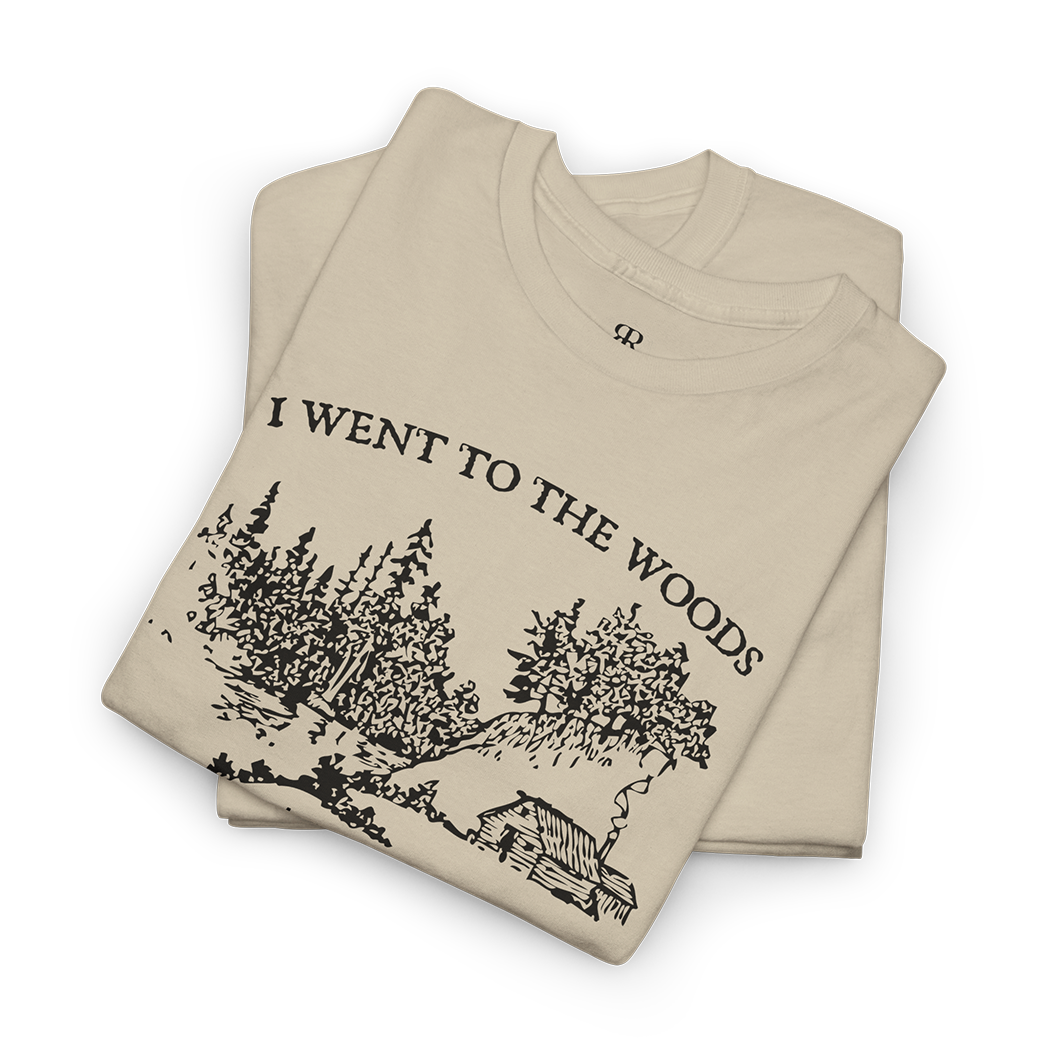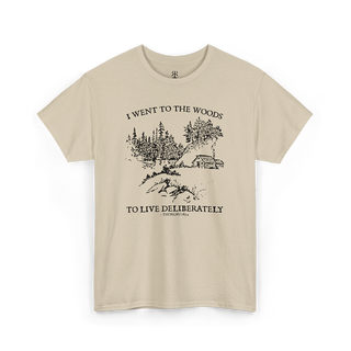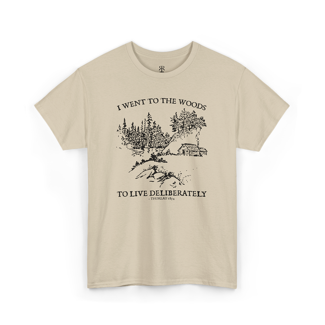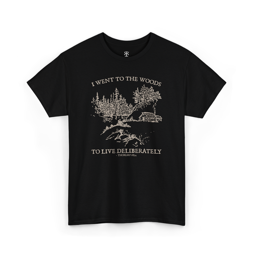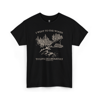 Henry David Thoreau T-Shirt with quote from Walden: "I went to the woods because I wanted to live deliberately". This Thoreau Shirt is perfect if you love poetry or Thoreau's vibe of bringing in back to nature.