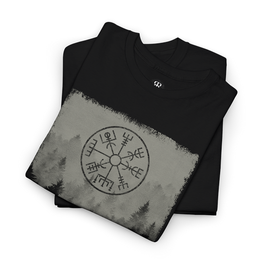 Vegvisir (Helm of Awe) showing a way through dark misty forest! A vegvísir (Icelandic for "wayfinder") is an Icelandic magical stave intended to help the bearer find their way through rough weather.Regular price From €21,50 -