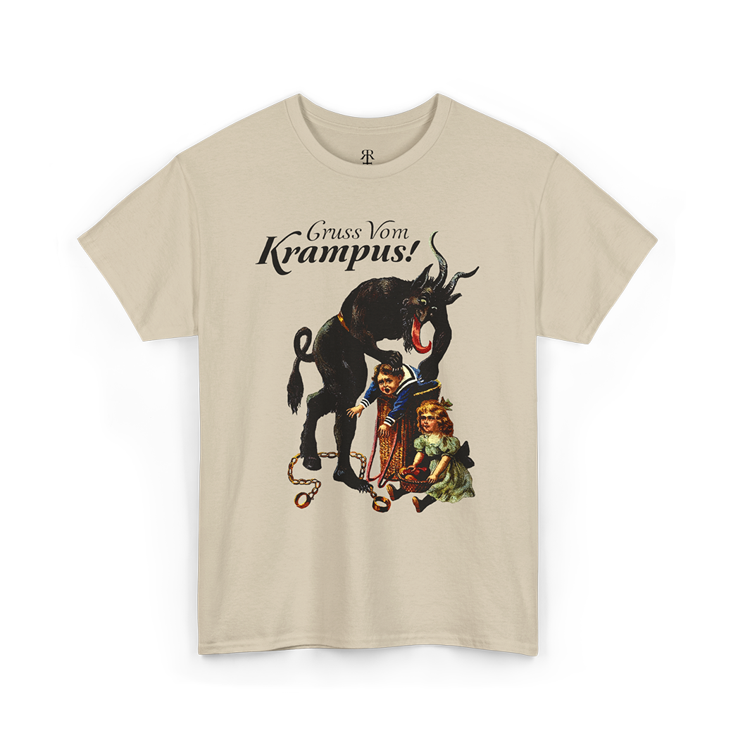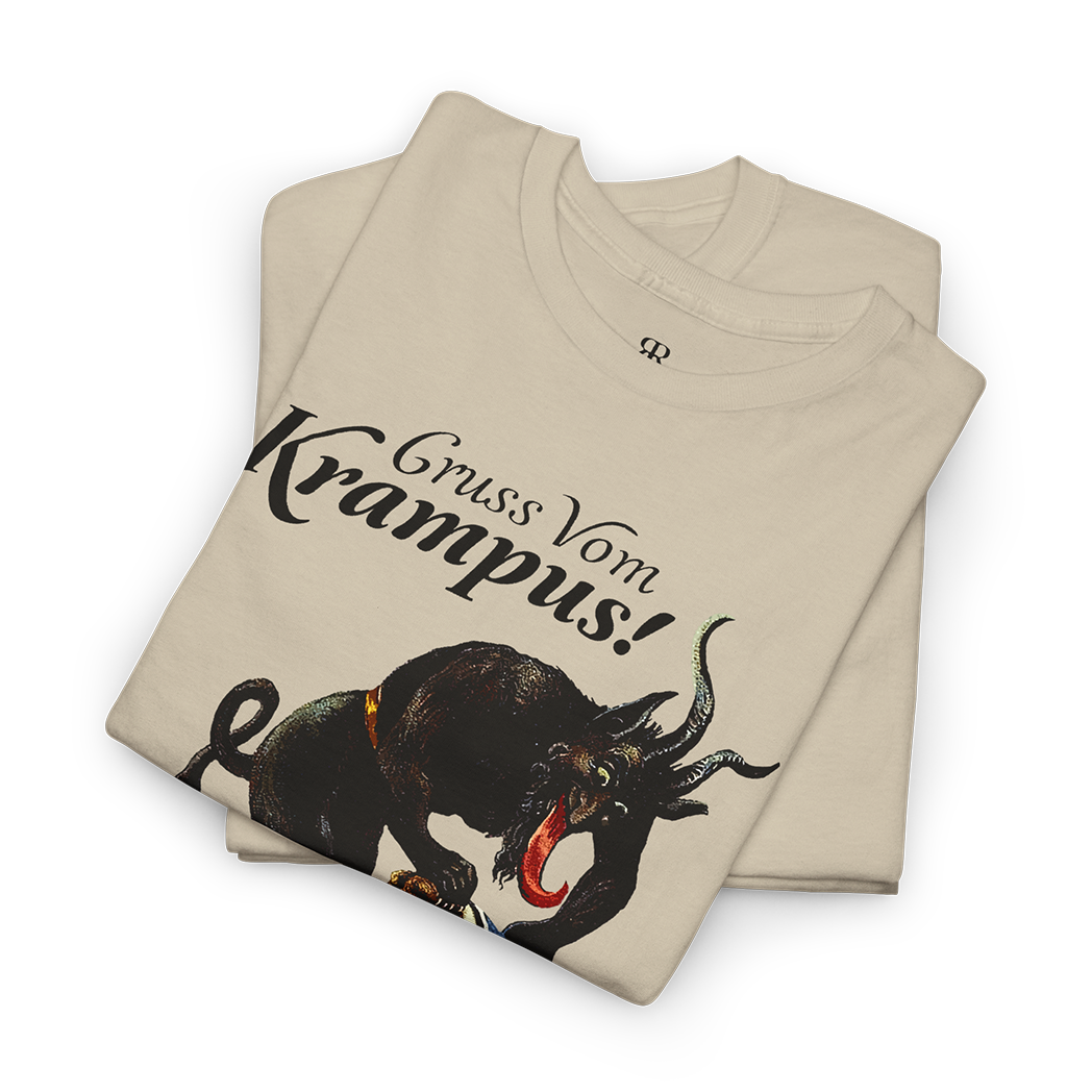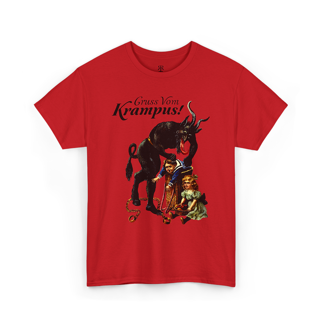 Venture into the shadows with our 'Gruss vom Krampus' shirt, a chilling tribute to the enigmatic figure that dances on the edge of folklore and fear.