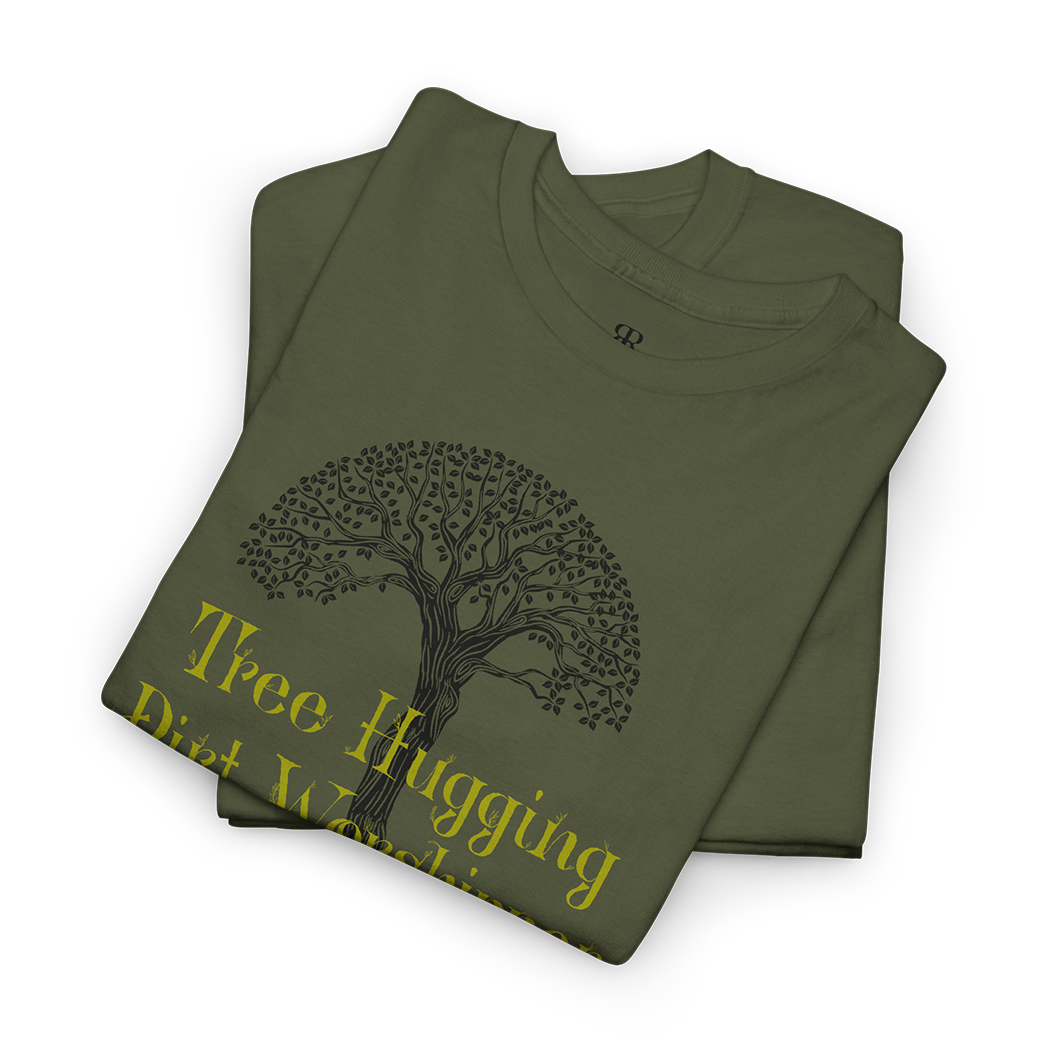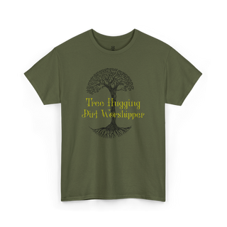 Step into the embrace of nature with our 'Tree Hugging Dirt Worshipper' shirt - a wearable ode to the profound connection we share with the earth. Imagine standing in a forest, surrounded by ancient trees, feeling the cool dirt beneath your feet - a moment of pure communion with the natural world. This shirt captures that essence, inviting you to proudly declare your status as a devoted earth enthusiast.