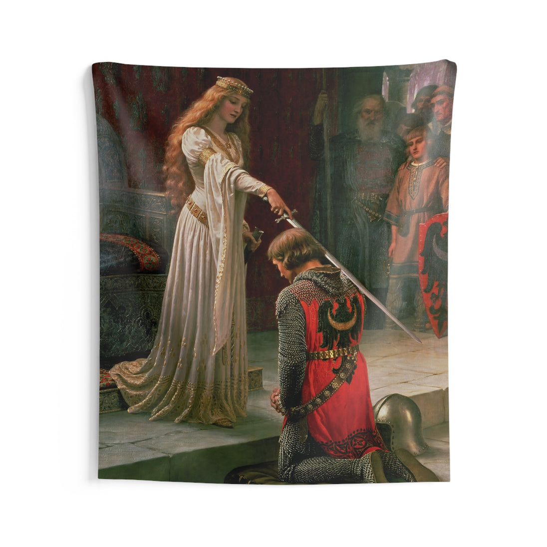 Edmund Leighton's The Accolade beautifully captures the chivalric ideal of knighthood. The painting depicts a moment of honor and devotion, as a noble lady knights a kneeling warrior. It symbolizes loyalty, bravery, and the bond between service and love, embodying the romanticized spirit of the medieval era.